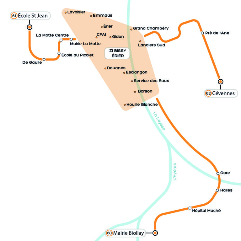 - Ligne 60 : Le quartier du Biollay et le centre-ville de Chambéry